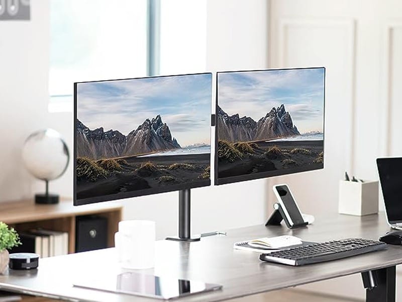 The central pole and arms are engineered to be extremely stable. Whether you have two standard 24-inch monitors or larger displays, this mount will hold them securely without wobbling.