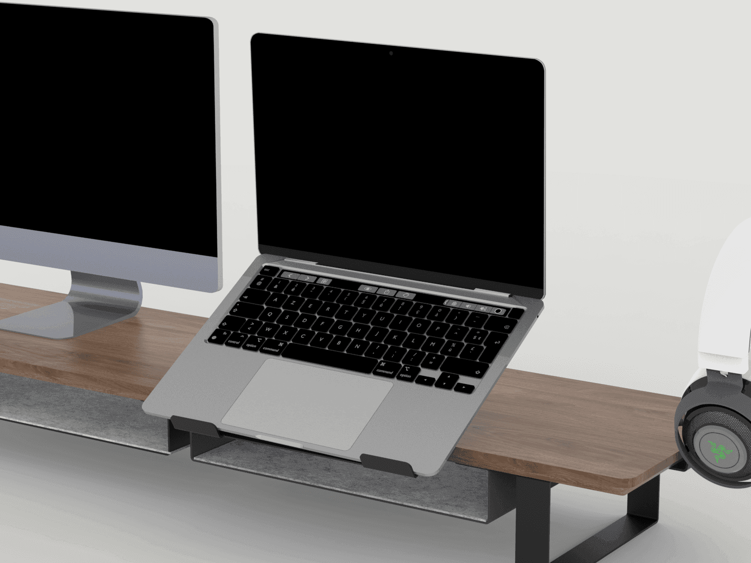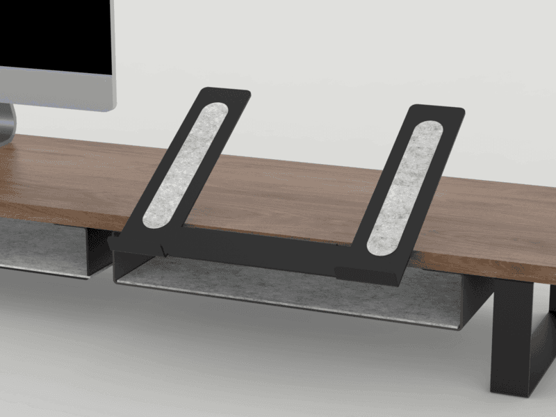 Elevate your laptop for better ergonomics and a cleaner workspace with the Laptop Stand to Mount on Desk Shelf. Designed to integrate seamlessly with your desk shelf, this sturdy stand holds your laptop at an optimal viewing angle while freeing up valuable desk space. Crafted from powder-coated metal with felt protection strips, it keeps your device stable and scratch-free.